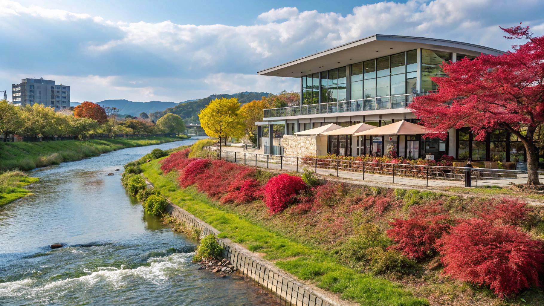 おしゃれなカフェでテイクアウトしたコーヒーやサンドイッチを片手に、河川敷の芝生に座ってのんびり過ごす、そんな自由で贅沢な休日の過ごし方がここでは簡単に実現します。