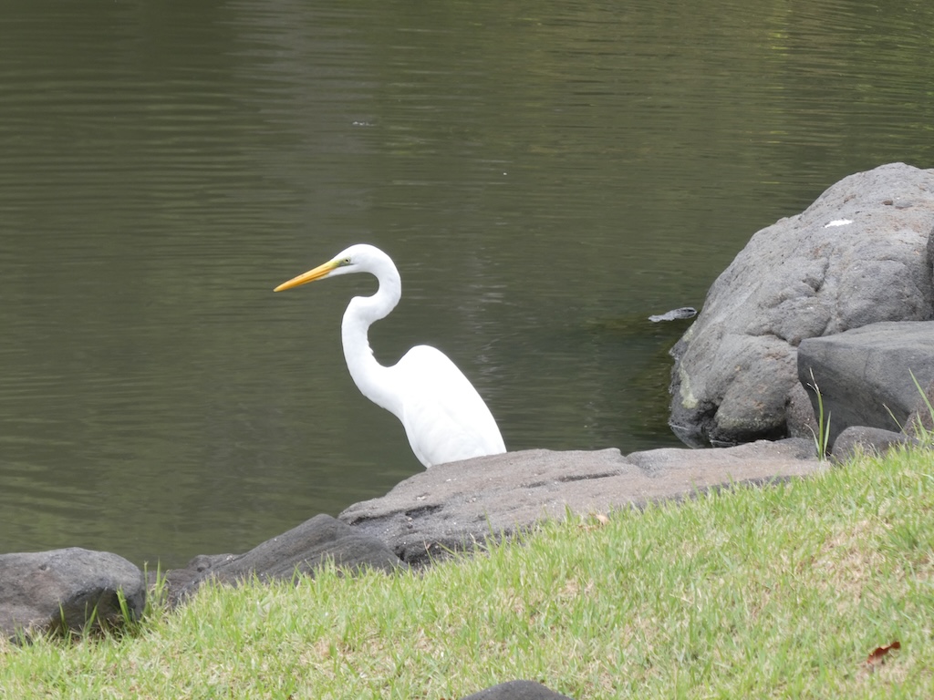 ぼーっと池を眺めていたら、白い鳥がいることに気づきました。