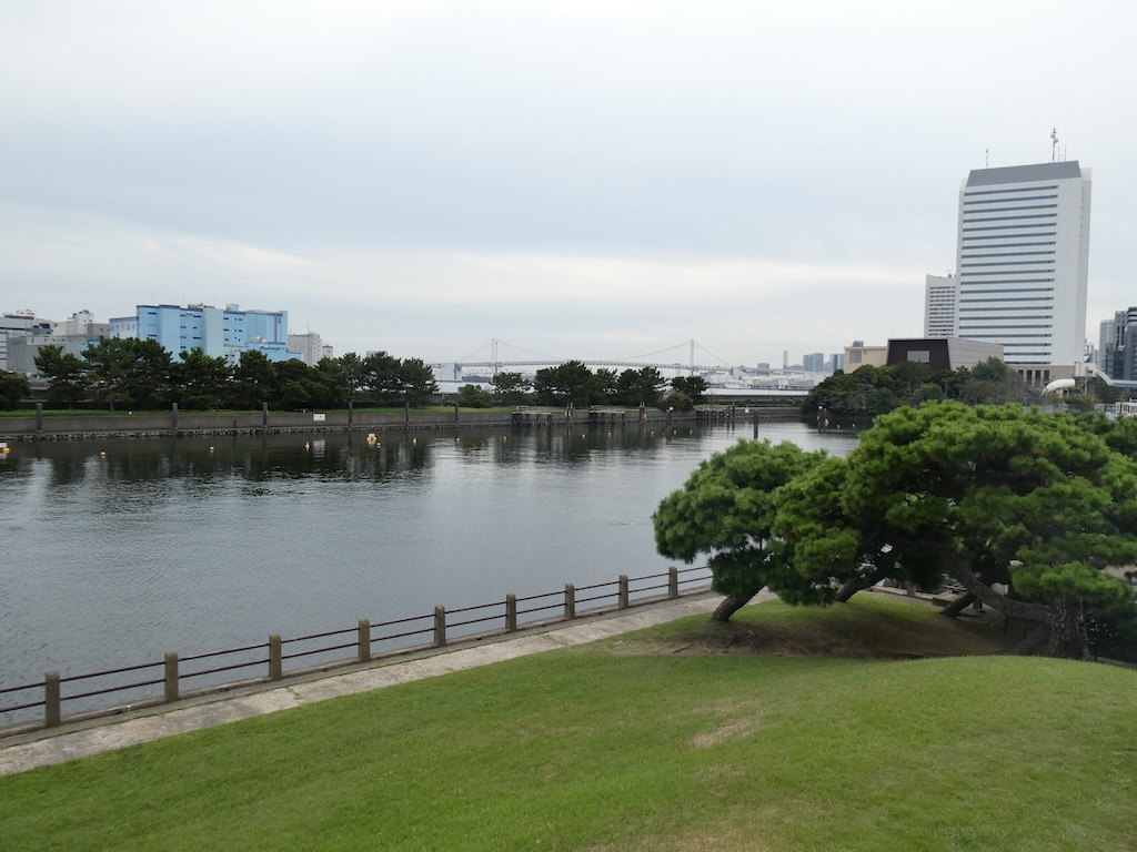10分ほど歩いて裏側に辿り着くと、東京湾につながる大きな川が広がっています。