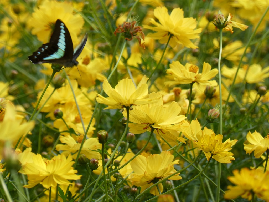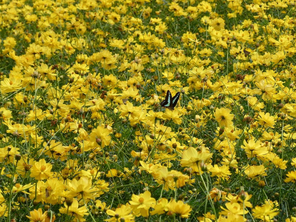 今の季節はキバナコスモスという黄色い花で覆われていました。