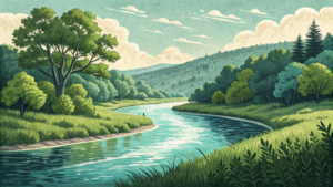 | 川沿いの景色 | 水面を眺めて歩調を緩める |