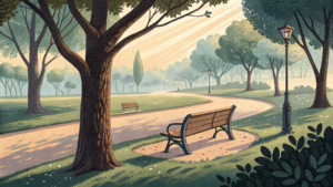 無理をして歩き続ける必要はなく、疲れたらベンチに座り、ただ流れる雲を目で追うだけで十分な休息になります。